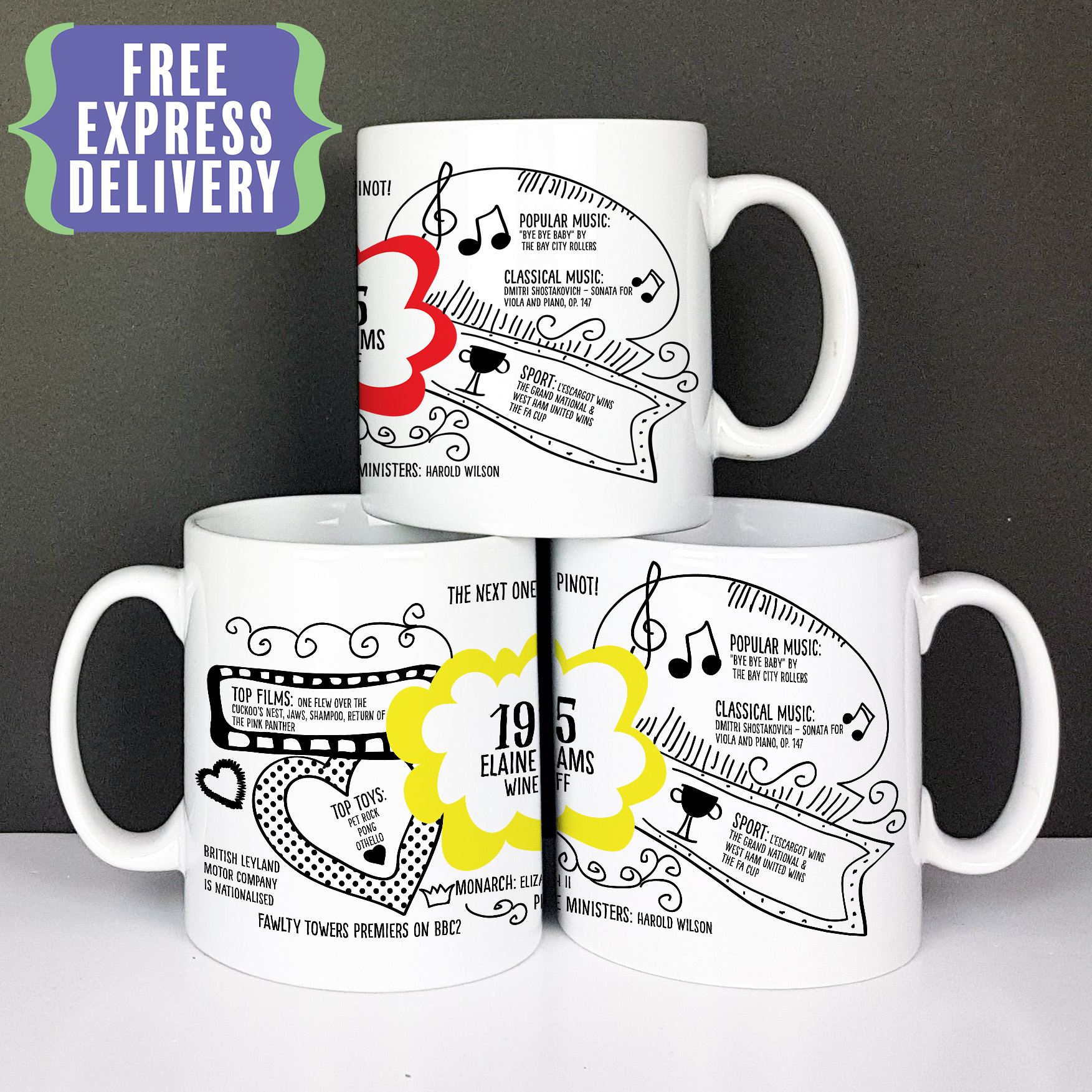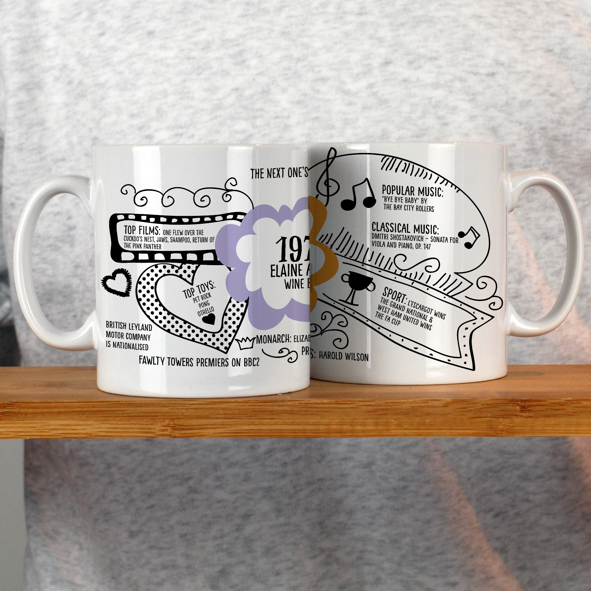 What a year 1975 was! This personalised 50th Birthday mug records key events in the United Kingdom and worldwide making a special birthday gift for him or her.