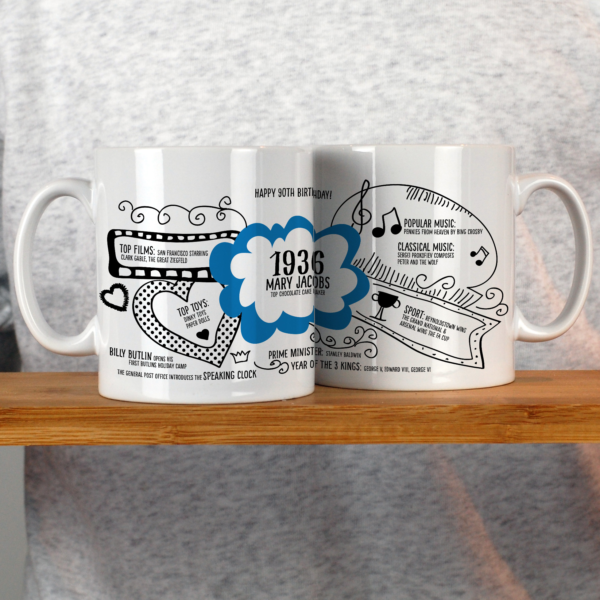 1936 was an extraordinary year. This beautifully designed mug captures key moments from the UK and around the world, turning a simple cuppa into a daily trip down memory lane. From fascinating historical highlights to cultural moments of the time, there’s always something new to spot.