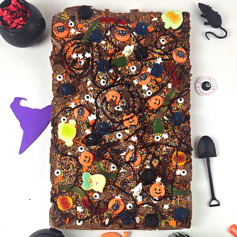Every slice is packed with indulgent chocolatey goodness and a playful crunch of toppings, making it a hit with both kids and adults. Whether you’re hosting a Halloween party, school event, or simply treating a group of trick-or-treaters, this tray bake is the ultimate centerpiece for a night of spooky fun.