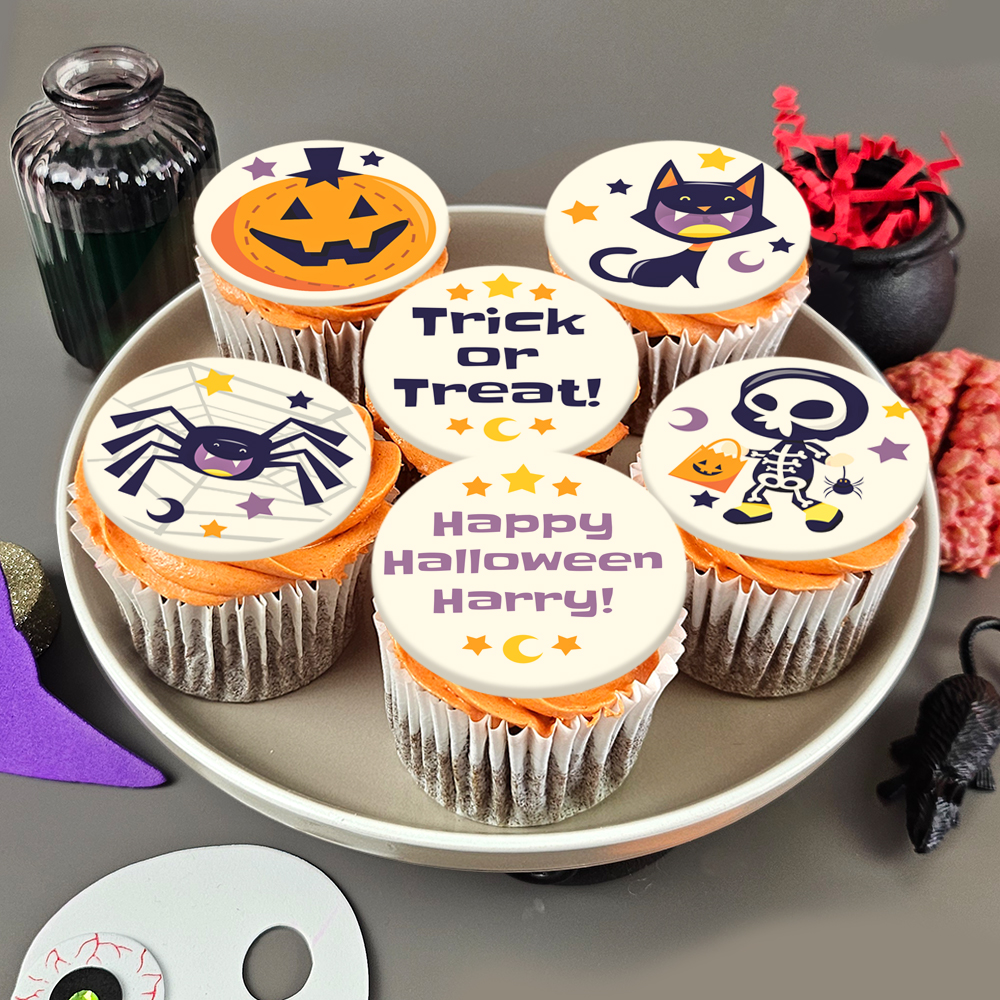 Order by 2 pm for next day delivery across the UK or book in advance. These personalised Halloween cupcakes are perfect for parties, gifts, or Trick or Treat fun!