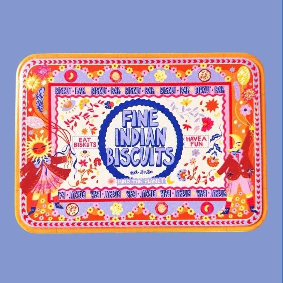 Enter the Dreamland with our starter kit: your choice of a bespoke tin designed with South Asian artists, paired with two curated biscuits.