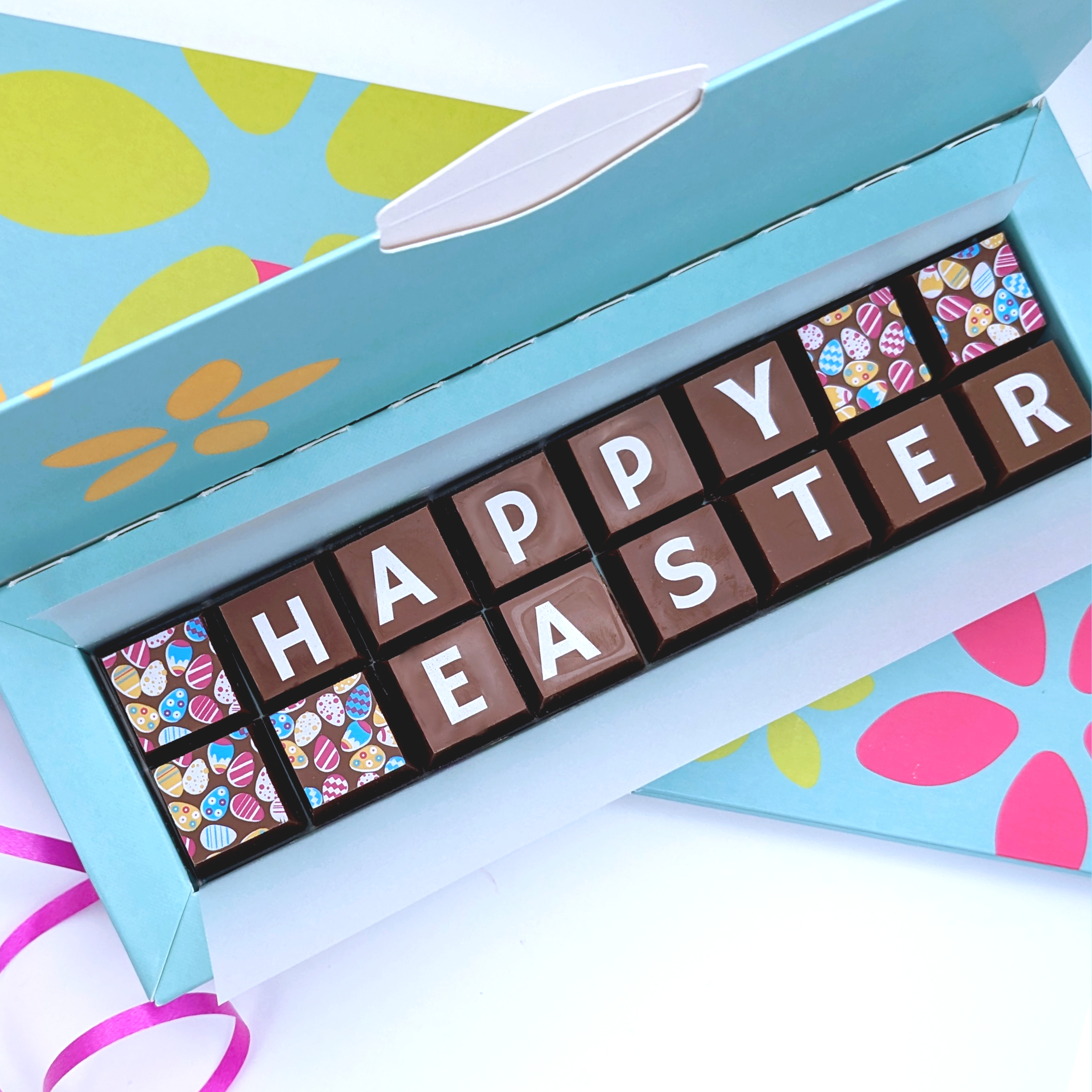 These tasty colourful chocolates celebrate Easter with a simple HOPPY EASTER message and make the perfect gift on this special occasion for all friends and family
