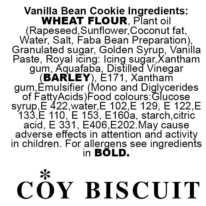 Shelf life: Our biscuits have a shelf life of 16 weeks from baking. Any biscuits dispatched will have a minimum of 2 weeks left, however cookies are generally dispatched within a few days from baking.