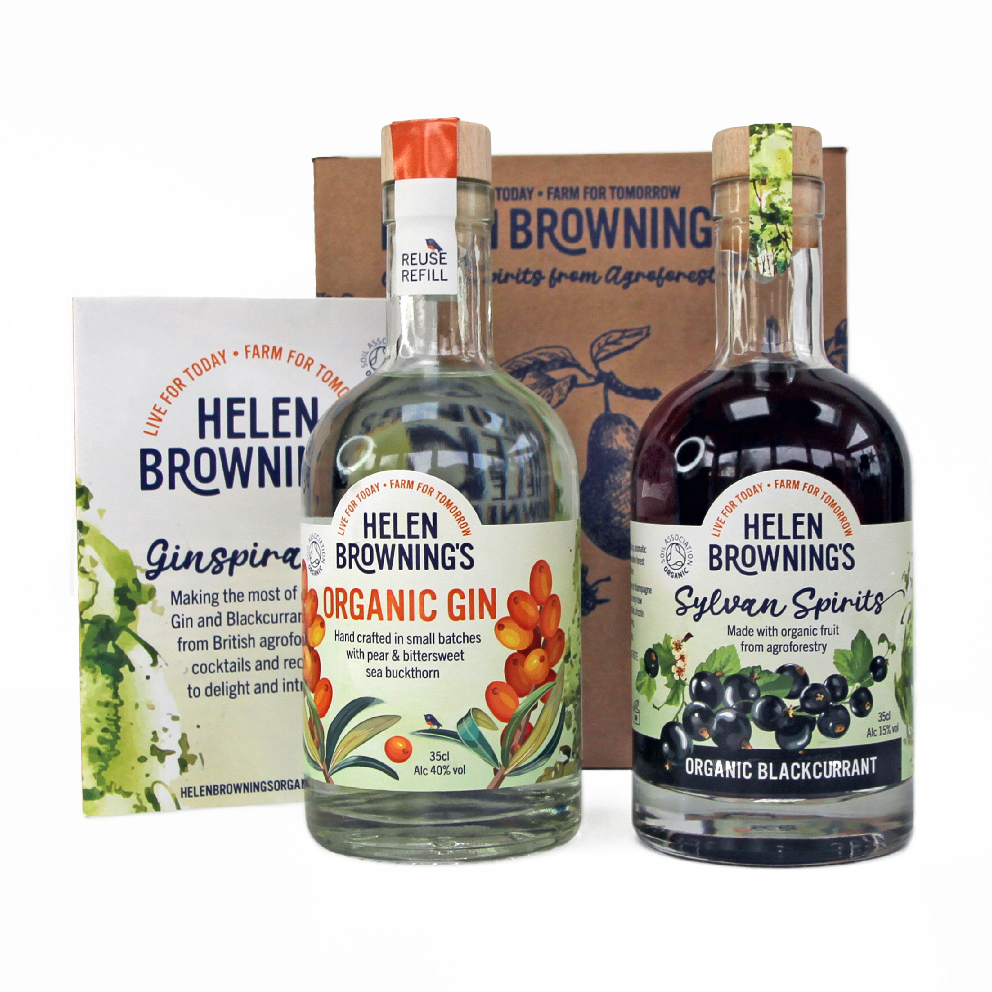 A bottle of award winning Organic Sea Buckthorn & Pear Gin (35cl) and award winning Organic Blackcurrant Sylvan Spirit (35cl) in a stylish, eco-friendly presentation box. A perfect gift set of unique spirits for a Christmas gift.