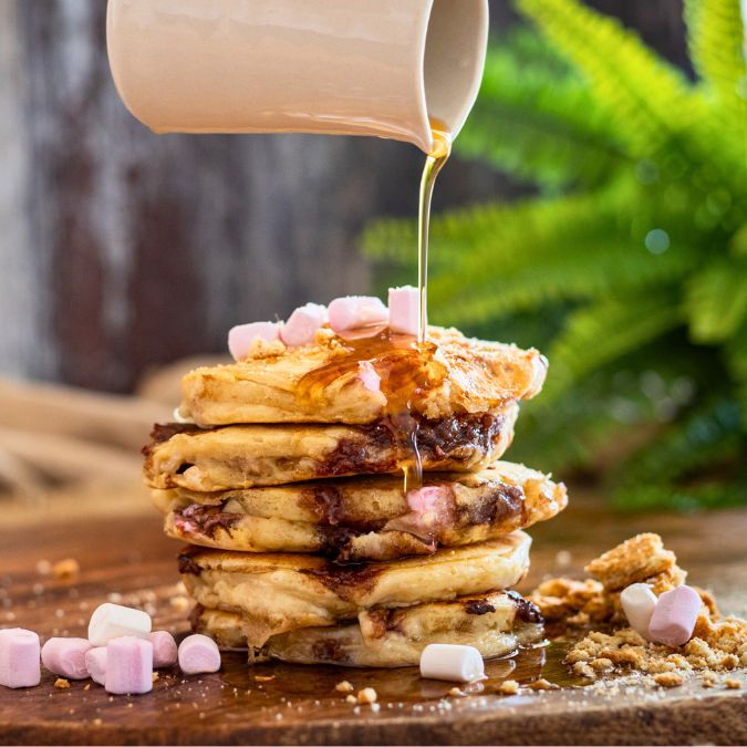 Create thick, fluffy pancakes with crisp golden edges and soft, gooey centres bursting with Rocky Road goodness. The perfect mix of melting chocolate, chewy marshmallow, and crunchy biscuit makes every bite a nostalgic, chocolatey delight.