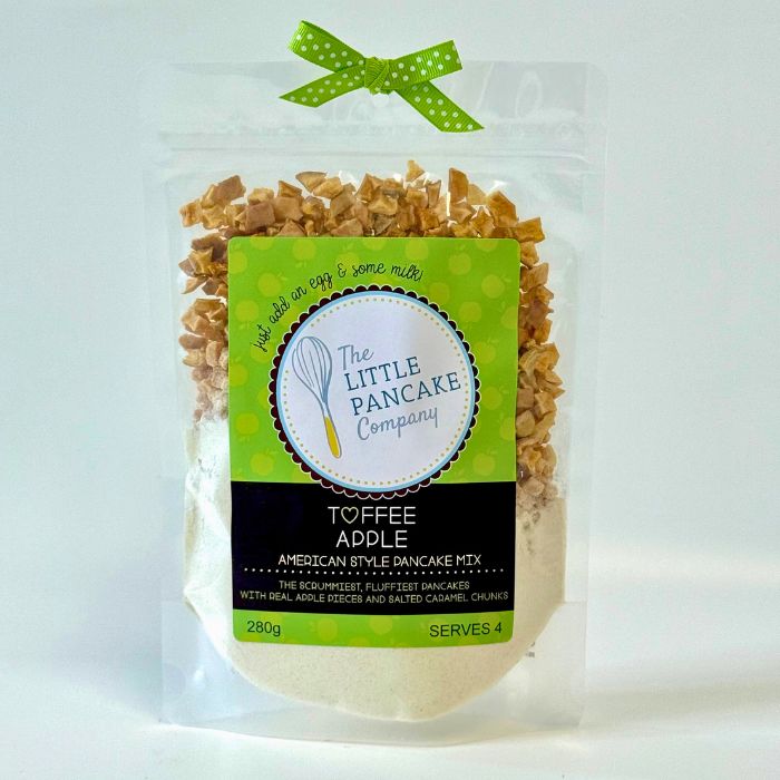 Bring the nostalgic taste of toffee apples to your breakfast table with The Little Pancake Company’s American-Style Toffee Apple Pancake Mix. Lovingly handmade in the UK in small batches, this deliciously indulgent mix is packed with real apple pieces and sweet, buttery salted caramel fudge for a comforting treat with a twist.
