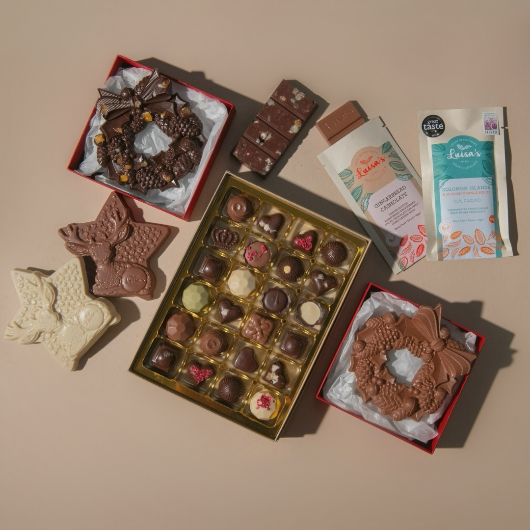 Beautifully presented and overflowing with handcrafted bean-to-bar chocolate, this hamper is the perfect centrepiece for sharing with loved ones or gifting to someone truly special.
