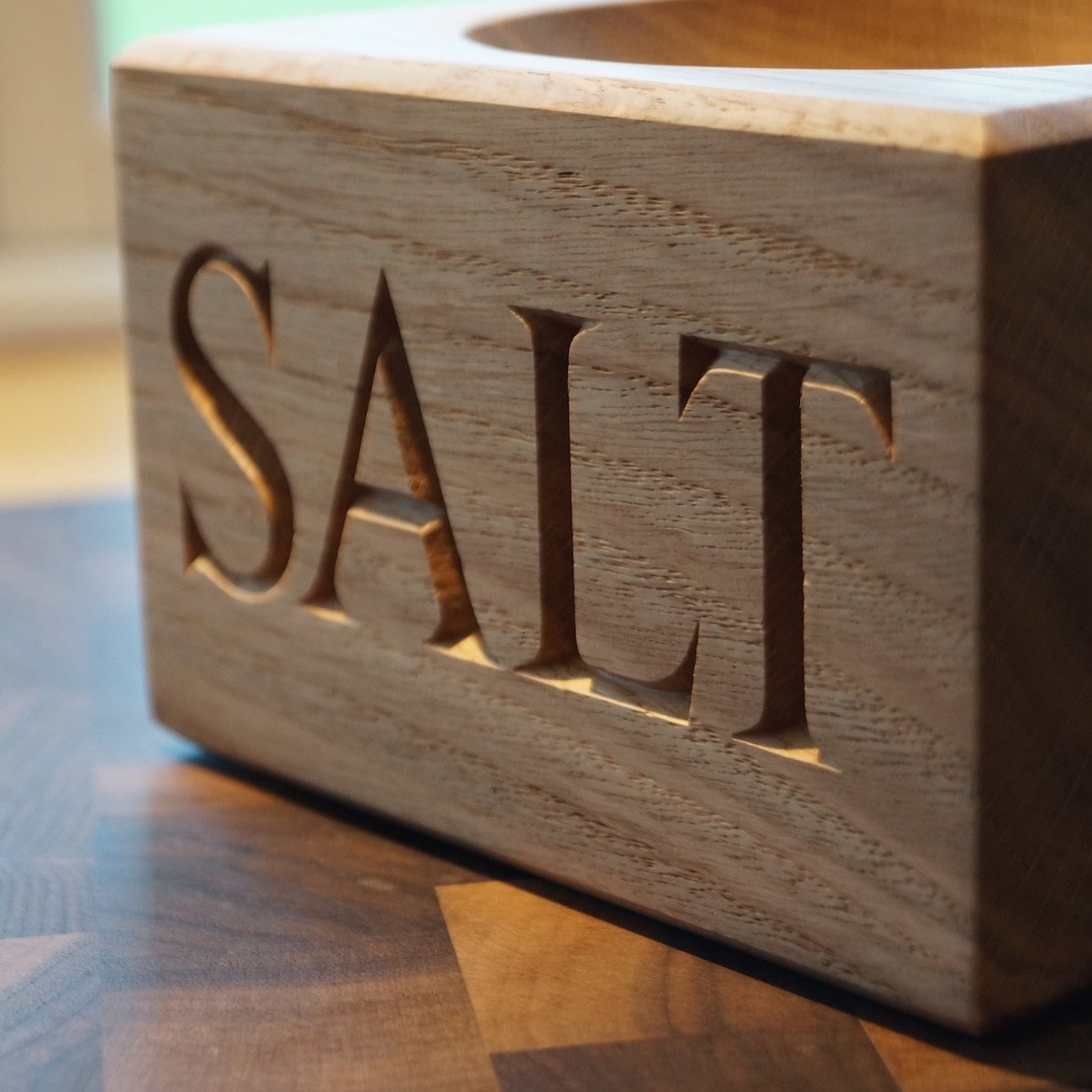 Our stunning Oak Salt Bowls This is our simple solid oak Salt bowl. Perfect for those who enjoy that hands-on approach when cooking.These fabulous looking wooden blocks are the perfect accessory to any cooks kitchen. You will always have salt right there at your finger tips - and lots of it if you go for the large oak salt bowl.