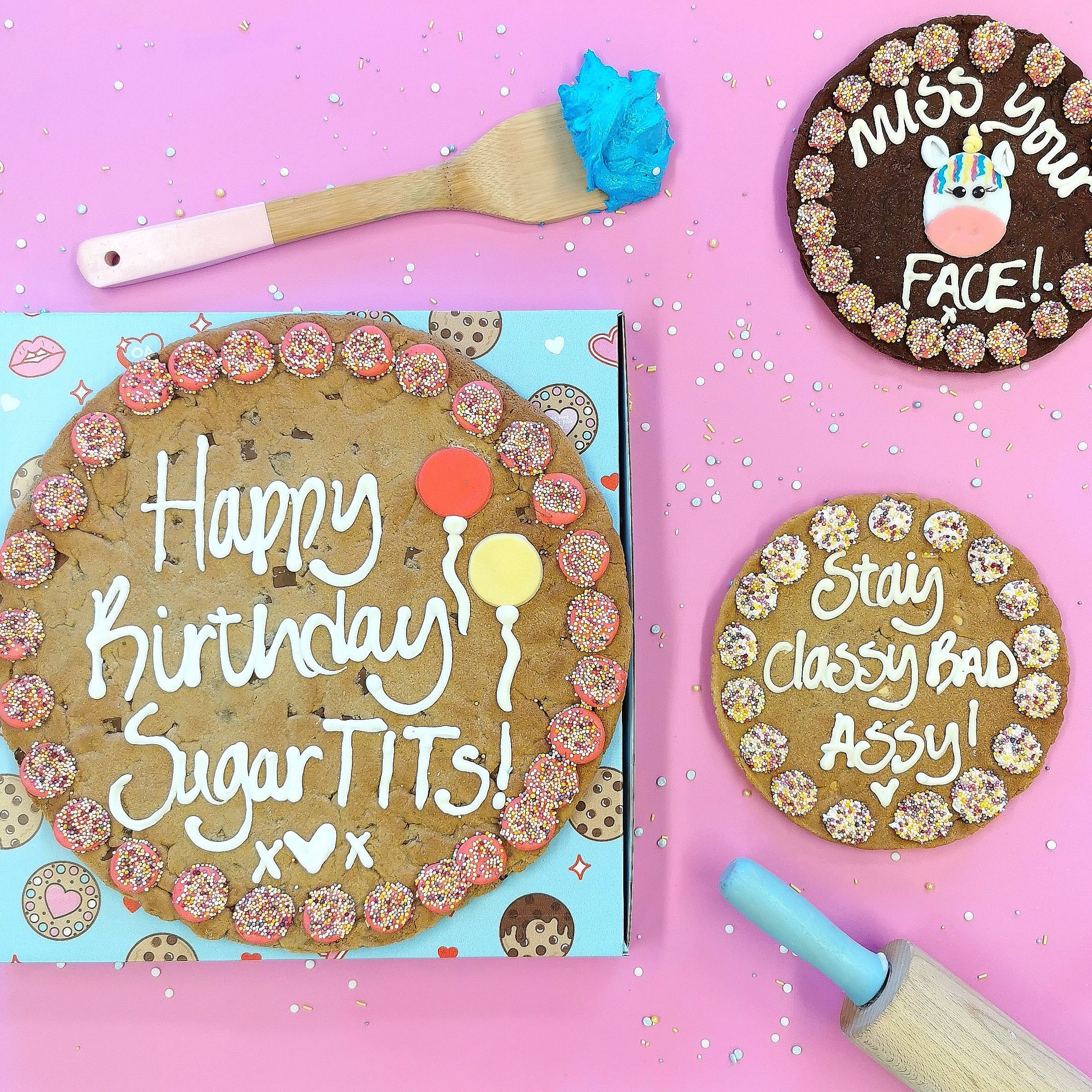 Lovingly handcrafted in the Ooh & Aah kitchen, each cookie is freshly baked and generously packed with indulgent chocolate chips. Finished with pink icing and decorated to perfection, every cookie is designed to be enjoyed right down to the last crumb.