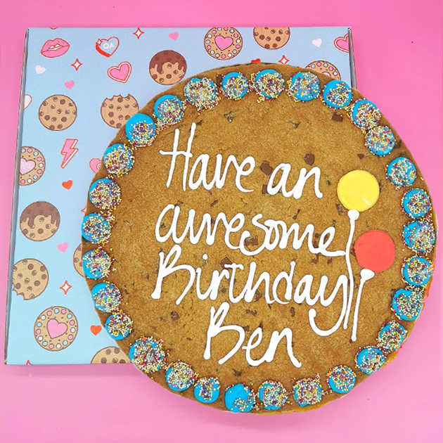 One of our customer favourites, this personalised Happy Birthday Giant Chocolate Chip Cookie is a fun and delicious way to celebrate their special day. Hand piped with your chosen message, it makes a thoughtful edible birthday gift that feels personal and memorable.