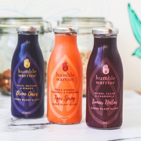 Humble Warrior was created after a trip to Sri Lanka, where its founders discovered the benefits of the island's fruits and plants. Their plant-based elixirs blend pure British spring water and plant extracts thought to help combat stress and restore balance.