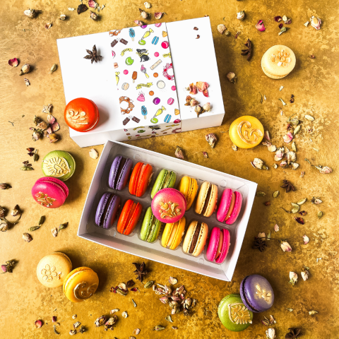Celebrate with this selection of vibrant, Mehndi Henna-inspired macarons. Inside the box, you will find six different delectable flavours, all suitable for vegetarians.
