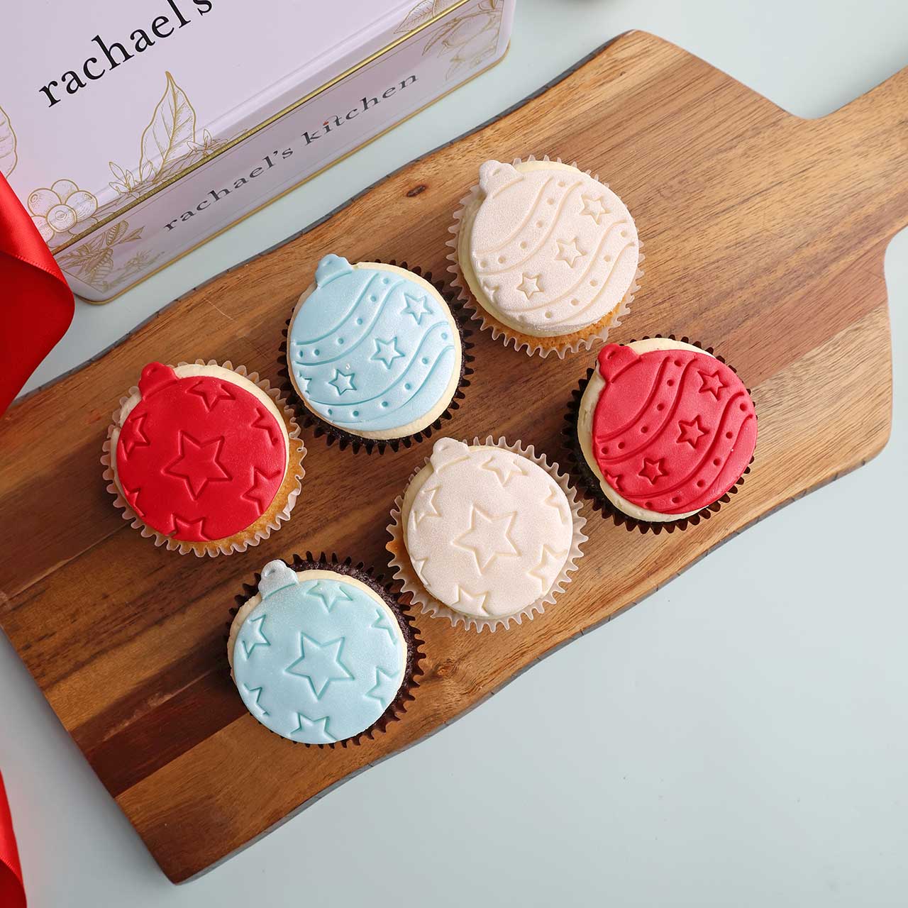 Featuring decorative Festive Baubles, this selection is available in boxes of 6 or 12 cupcakes.