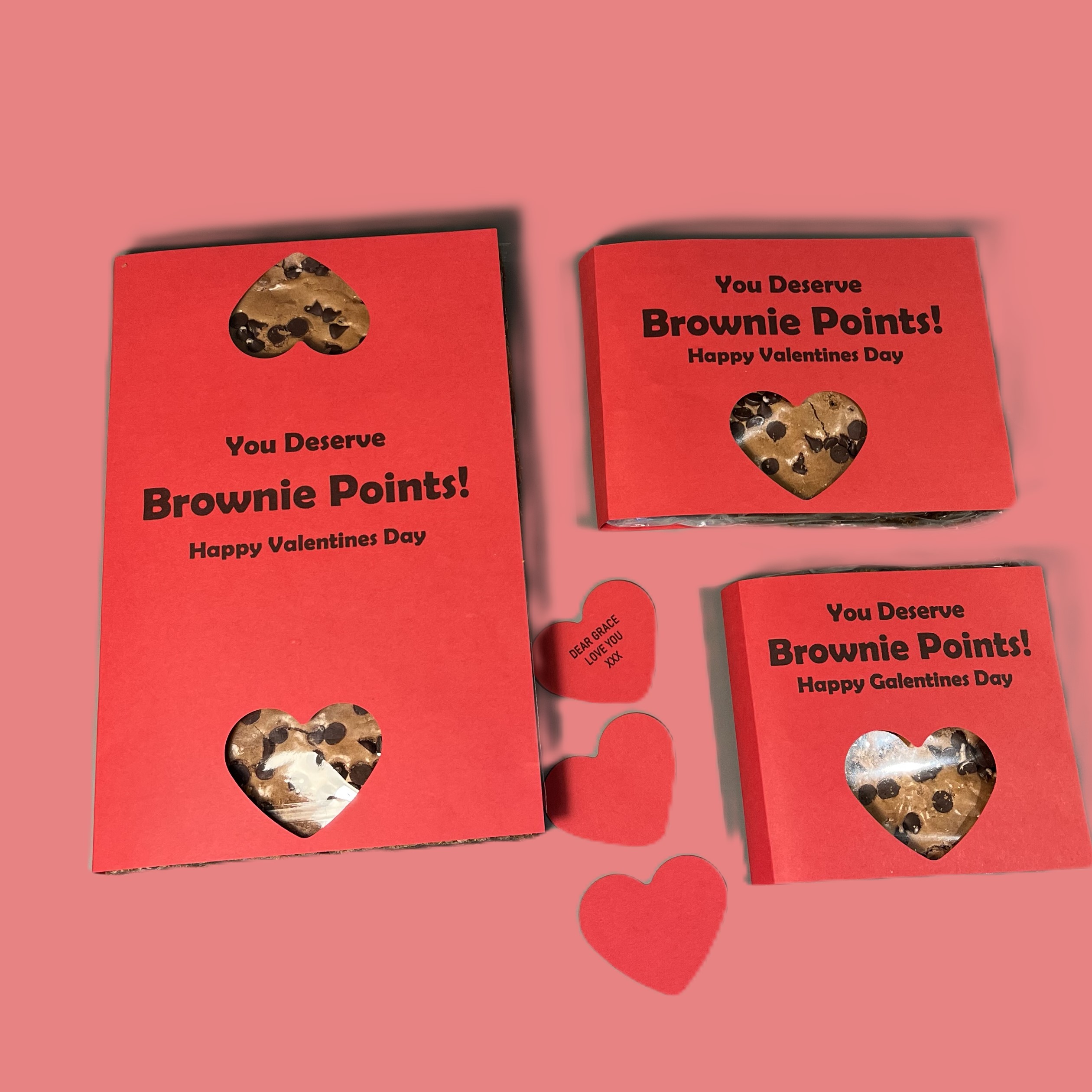 The Brownie is visble through the cut out heart & your personalised gift message can be added to this cut out.