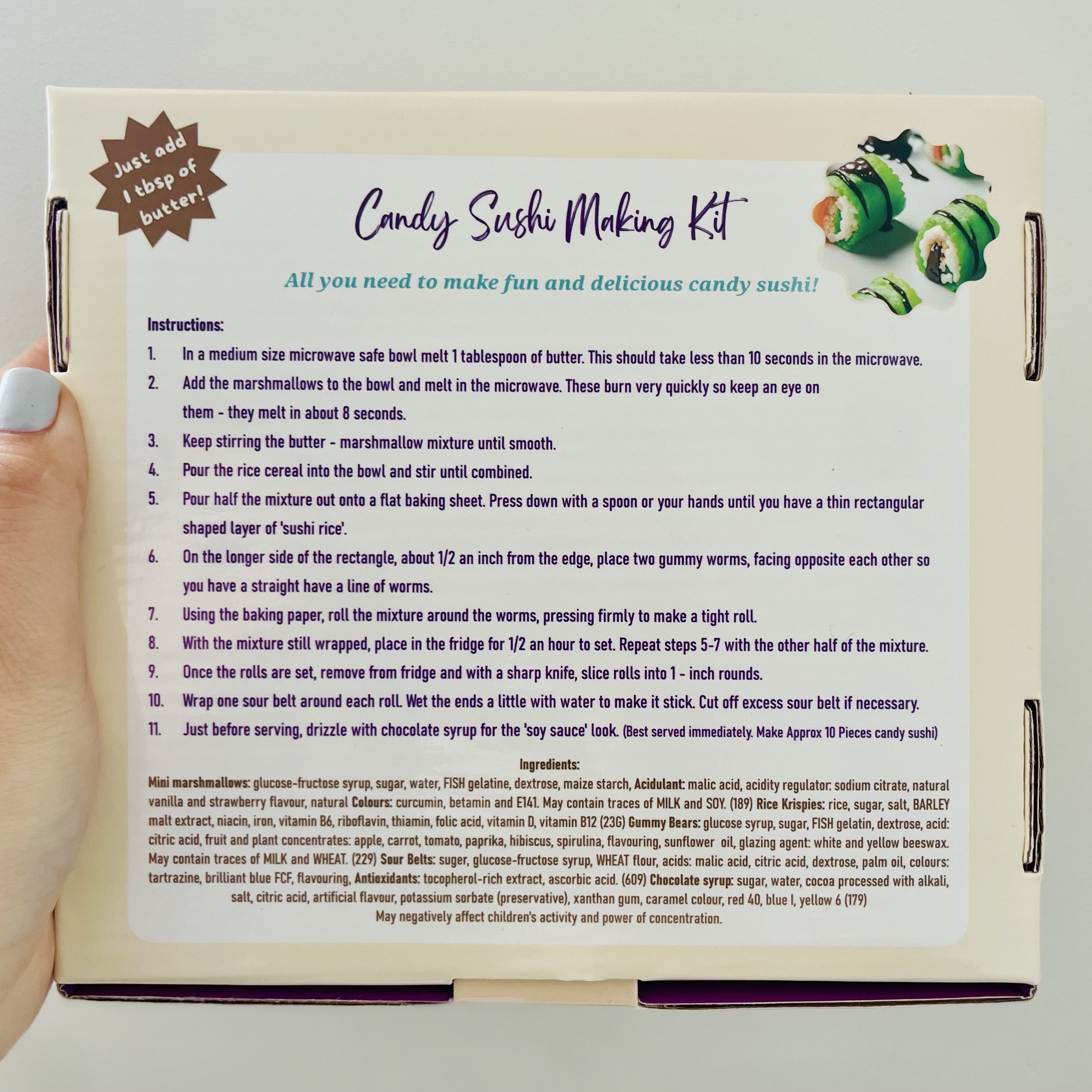 This candy sushi making kit is so easy to make when you've got all the high quality ingredients pre-measured and weighed out for your convenience and all beautifully packaged up and delivered directly to your door. Simply add some butter and enjoy making (and eating!)