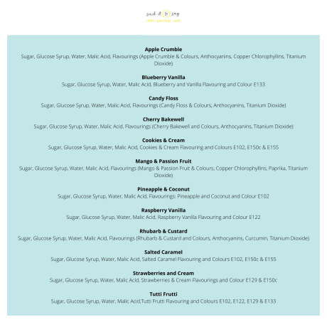 Please see product photos for a list of all flavour ingredients