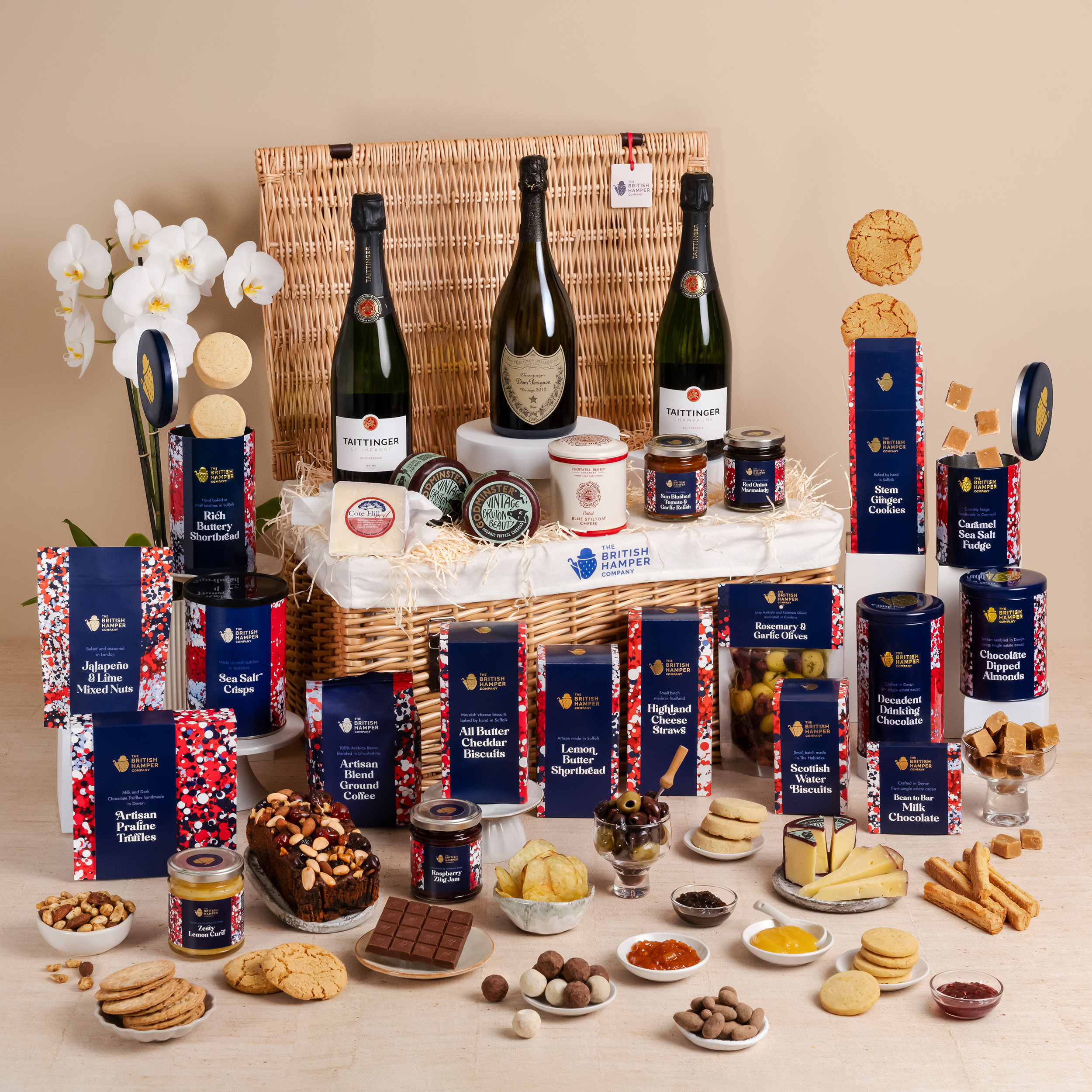 The pop of Taittinger Champagne sets the tone for celebration, while the accompanying treats from Britain’s finest artisans ensure each bite is memorable.