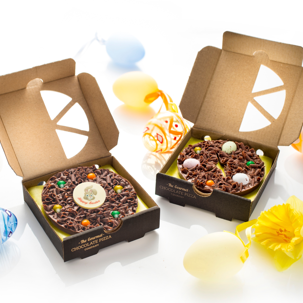 Our Easter mini chocolate pizzas are a great gift for any chocolate lover during the Easter holidays. They make a fun addition to an Easter egg hunt - a chocolate pizza as a prize is a unique twist that is sure to keep people talking! They also make a memorable alternative to the standard Easter egg. Plus, each gift set comes with two mini pizzas, so you can always gift one and keep the other for yourself!