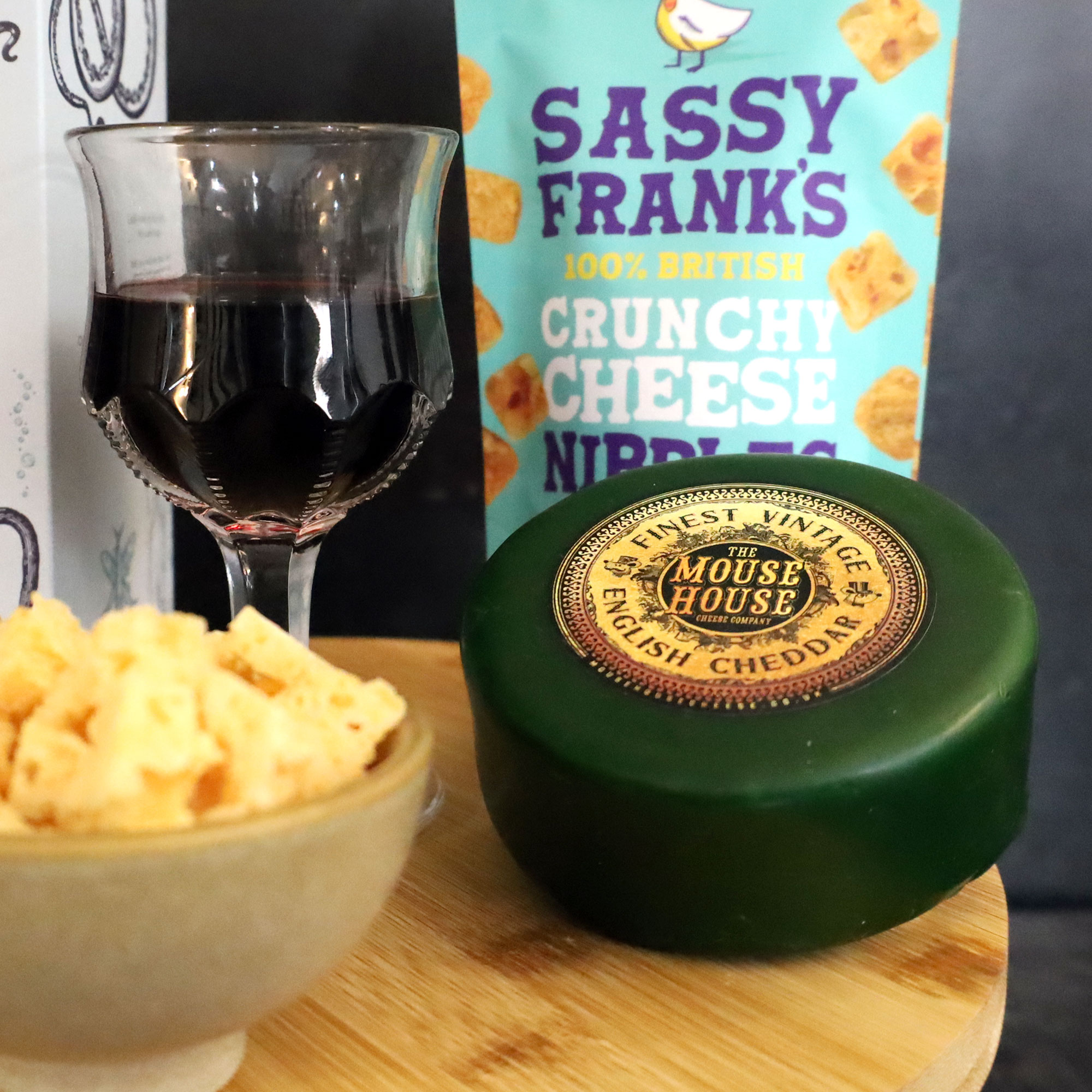 Our Mouse House Port & Cheese Hamper is a great choice for picnics in the summer or as a birthday gift for a cheese and port lover.This set includes; our Finest Vintage– a 3 year mature cheddar containing calcium crystals with a sweet note starter, our Red Leicester- a rich, creamy red Leicester truckle, sealed in traditional wax. Lastly, to add that hint of smokiness, we have included our Traditional Applesmoked– which has been smoked over applewood chips naturally to add that authentic smokey taste. We have paired our cheeses perfectly with the fruity notes of Tanners Port, as well as our Percivals Fire Chutney, Sassy Frank's Cheese Nibbles and Percivals Sea Salted Crackers to enhance the creaminess of our cheese.