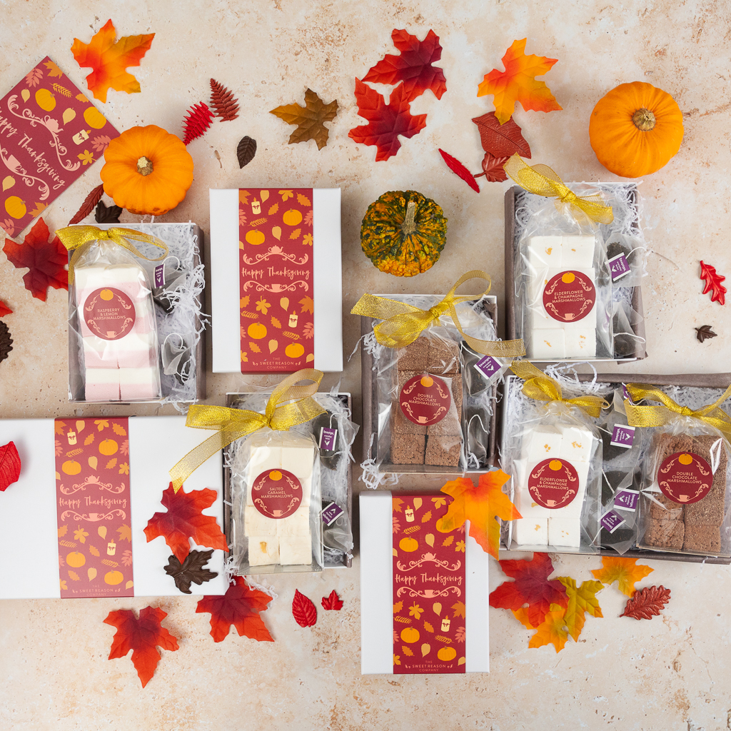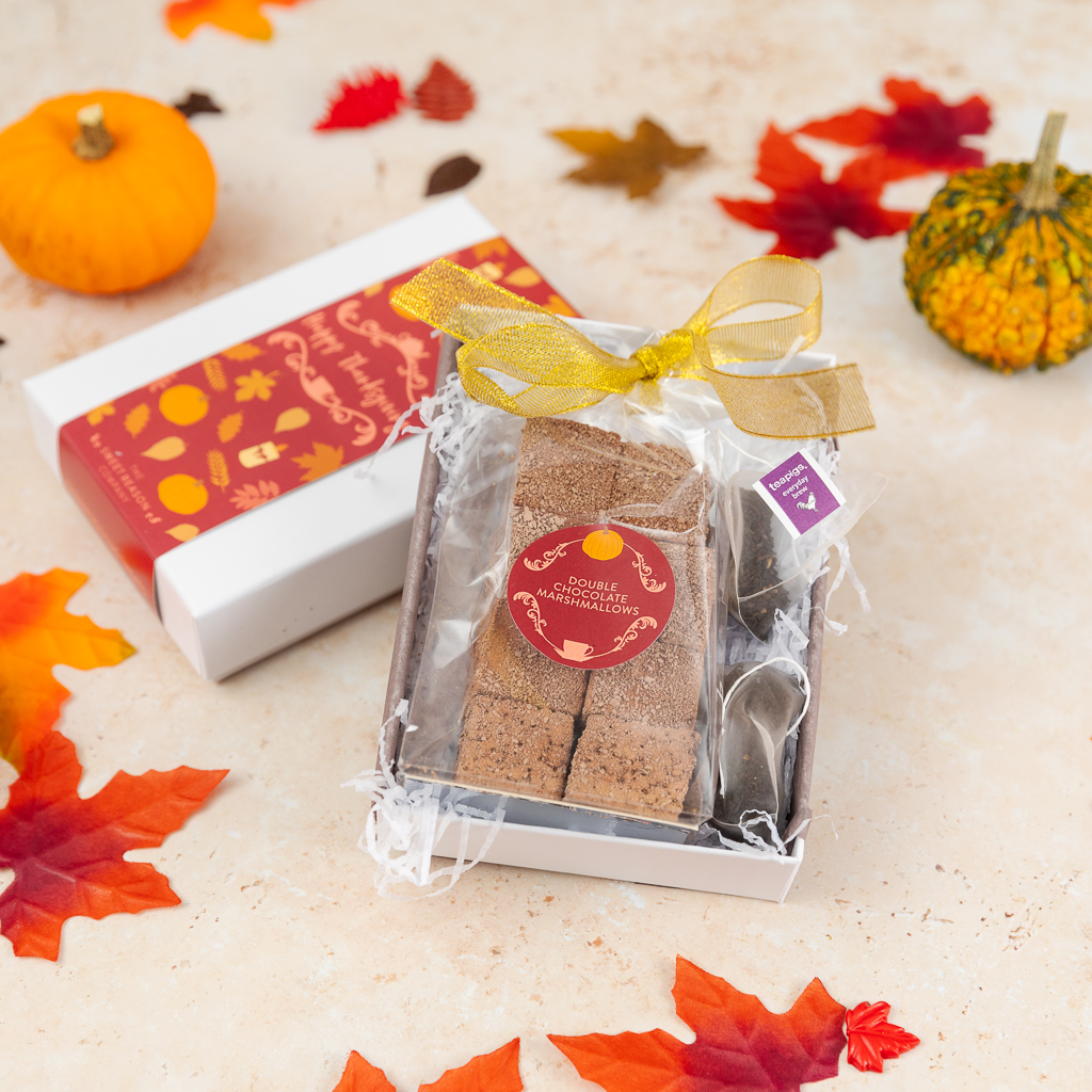 If you’re a guest at someone’s house this time of the year, don’t forget to bring our artisan marshmallows, to show everyone how grateful you are for having them in your life. This box will give you another reason to give thanks with a personalised Thanksgiving gift card for your own message.
