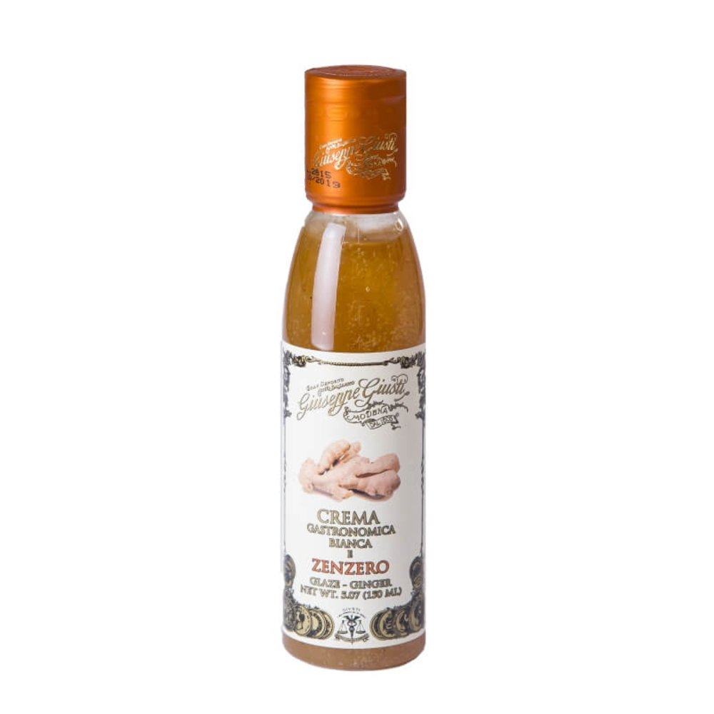 Made from white balsamic vinegar and ginger which is slowly reduced to a nicely balanced thickened cream. This velvety glaze is sweet and peppery with a beautiful golden colour.Delicious on raw or cooked vegetables, with cheese, white meat, carpaccio, dried beef, potatoes, fish, sushi, sorbets, biscuits and on desserts.